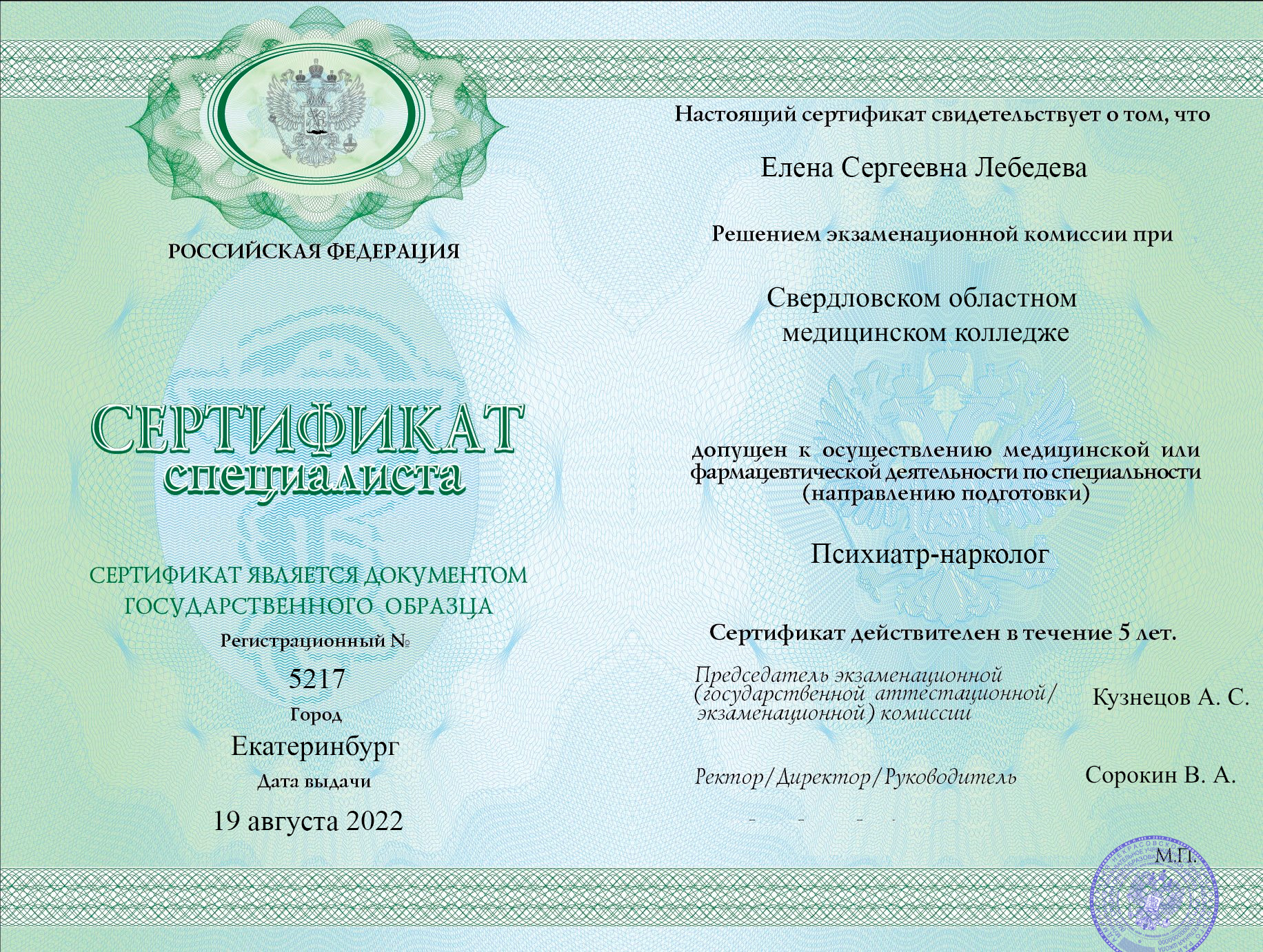 Елена Сергеевна Лебедева врач нарколог клиники доктора Стукаловой в Белой Холунице